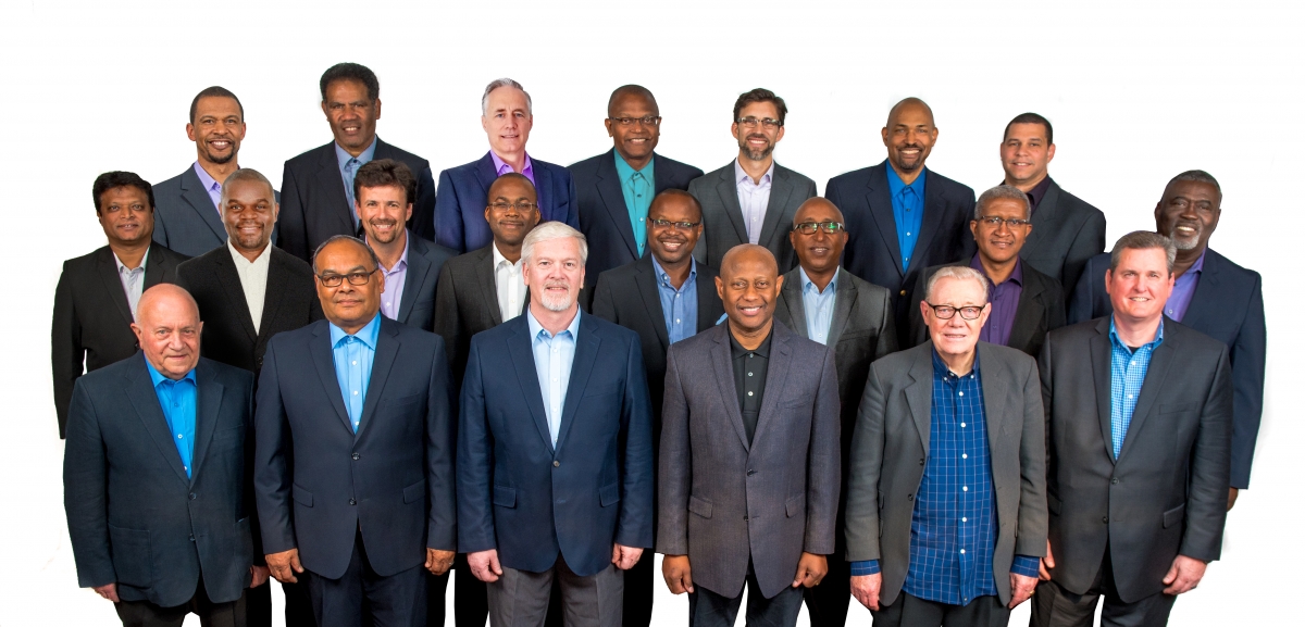 From Middle Left: Nelson Negi (India), Richard Etyaale (South Africa), Farid Youssef (Trinidad), Bevil Wooding (Trinidad), Paul Ogedengbe (Nigeria), Tekleab Zeru (Ethiopia), Christopher Berkeley (Trinidad), Wingrove Spencer (Antigua)